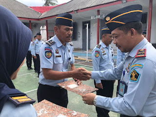 METRO ONLINE, BANTAENG - Rumah Tahanan Negara (Rutan) Kelas II B Bantaeng Kanwil Kemenkumham Sulawesi Selatan menggelar Apel pagi rutin yang dirangkaikan dengan pemberian sertifikat penghargaan bagi pegawai teladan, Selasa (28/02).